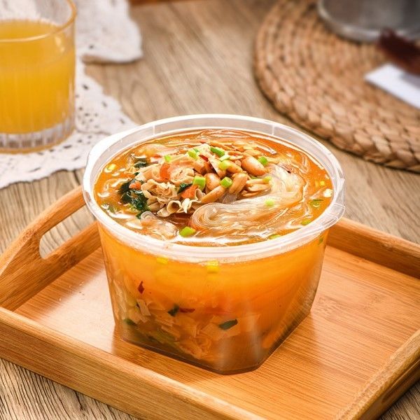 1. افتح الغطاء الشفاف، أضف الشعيرية والمكونات، أضف الماء المغلي إلى خط التعبئة الداخلي.